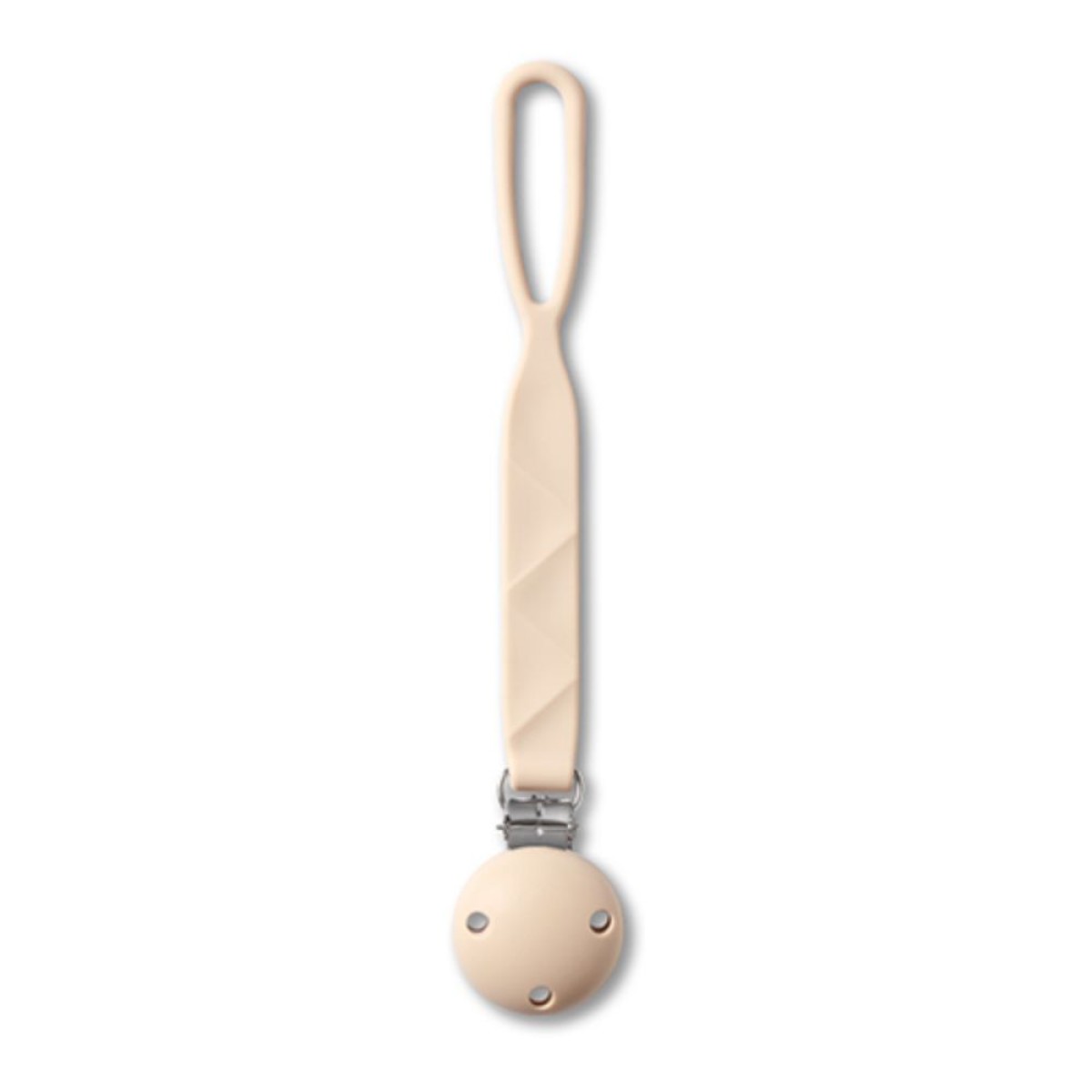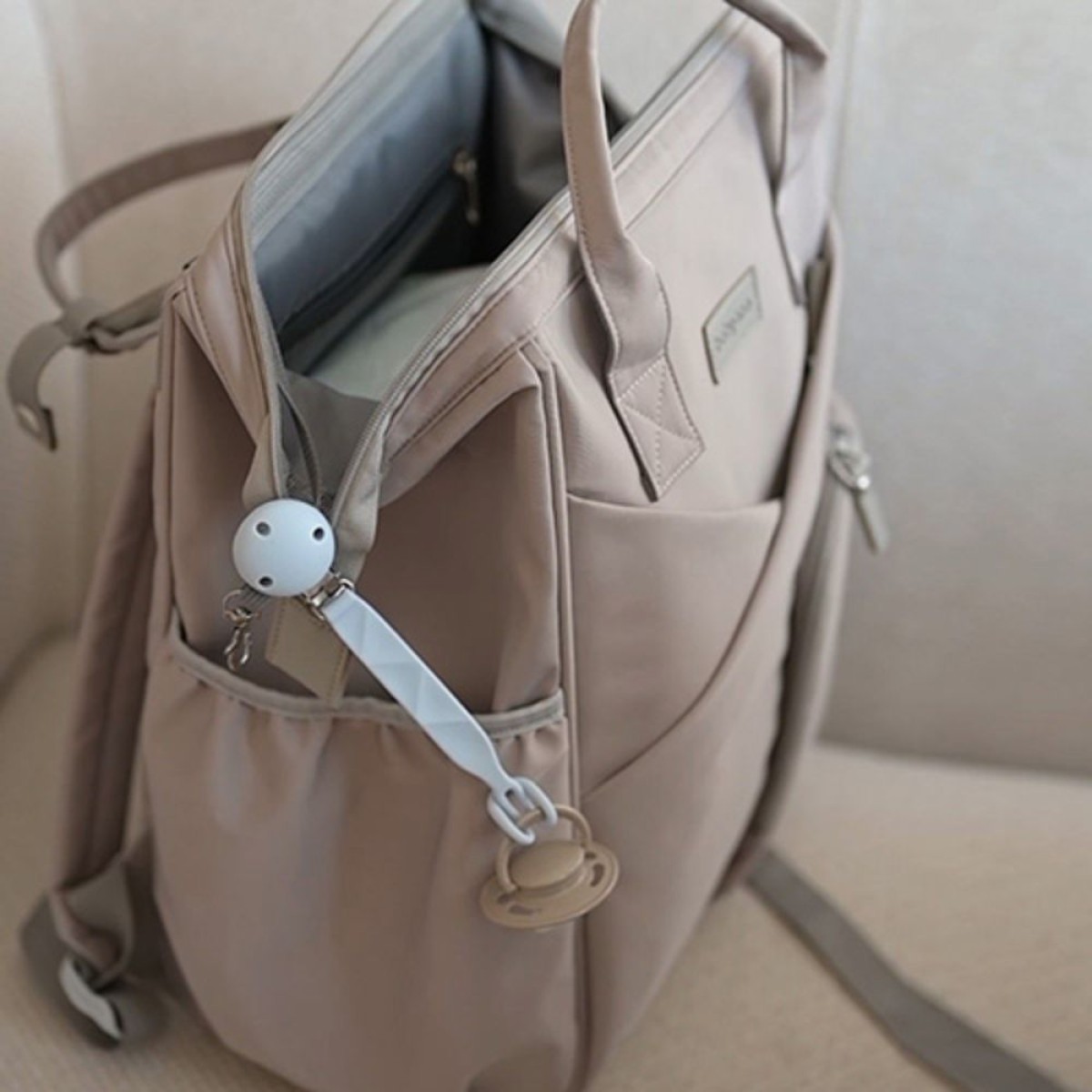 Silikonski privjesak za dudu s kopčom opremljen je jednostavnim sustavom za pričvršćivanje. Samo jednom rukom možete pričvrstiti privjesak na djetetovu odjeću, torbu ili kolica. Koristan je kod kuće, u šetnji i na putovanju — gdje god želite imati dudu uvijek pri ruci.