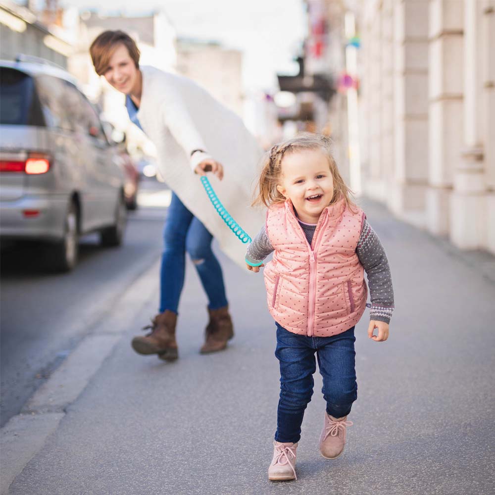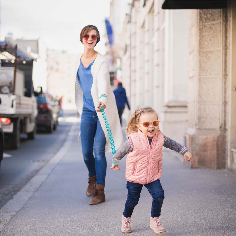 "Stay here" udobna sigurnosna narukvica s dvostrukim čičkom jamči sigurnost Vašeg djeteta u gradu ili na putovanjima, štiteći vaše dijete od opasnosti. Narukvica se svojom rastezljivom spiralom može razvući do 1 metra dužine i udobna je za nošenje zahvaljujući svojoj neoprenskoj tkanini.