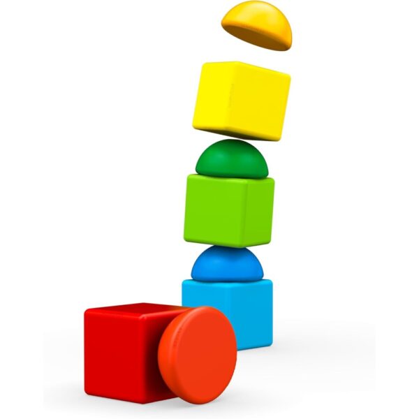 Blokovi u setu dolaze u živim bojama. Svaka boja privlači pažnju djeteta. Djeca uče razlikovati i imenovati boje. To potiče vizualnu percepciju. Oblik kockica je prilagođen malim rukama. Rubovi su zaobljeni za sigurnu igru.