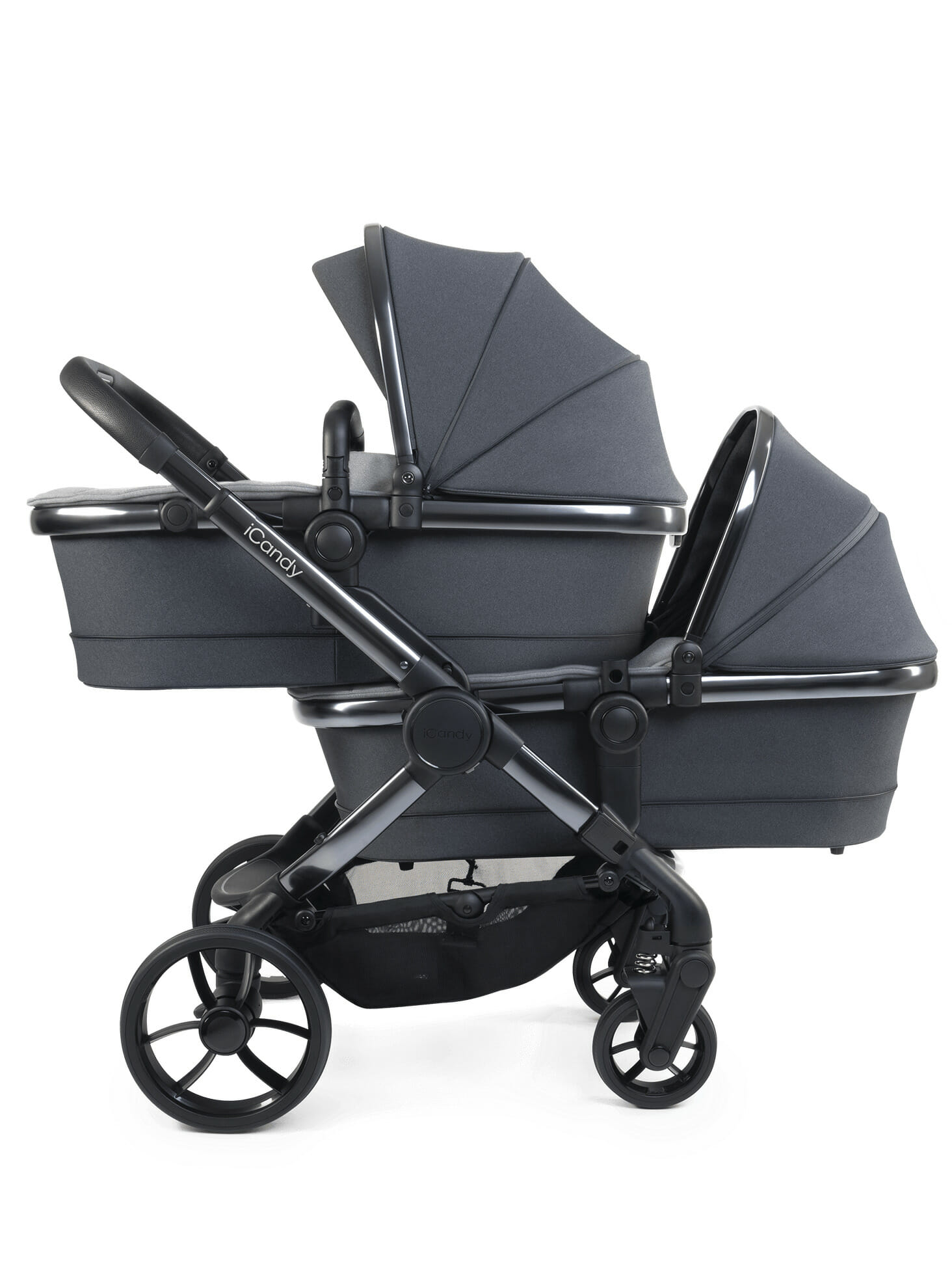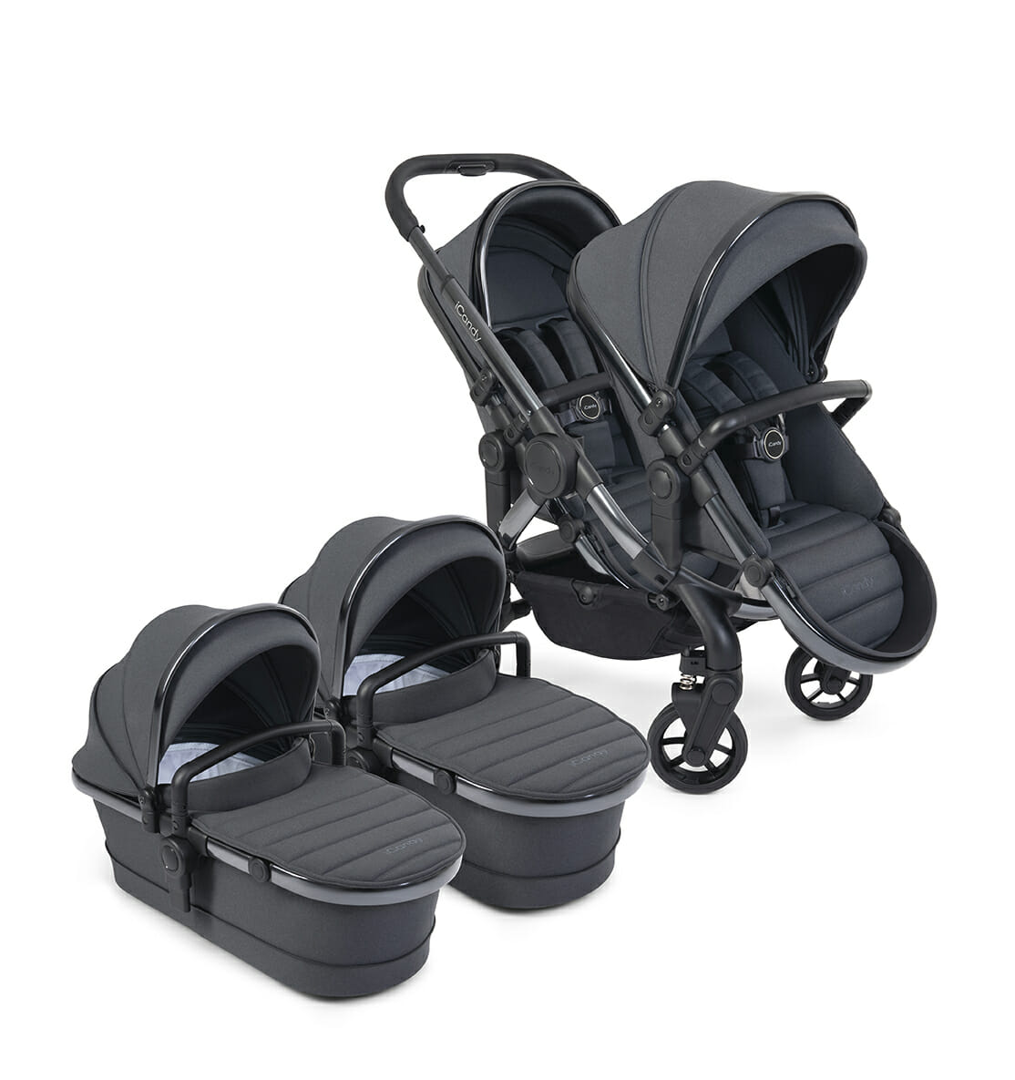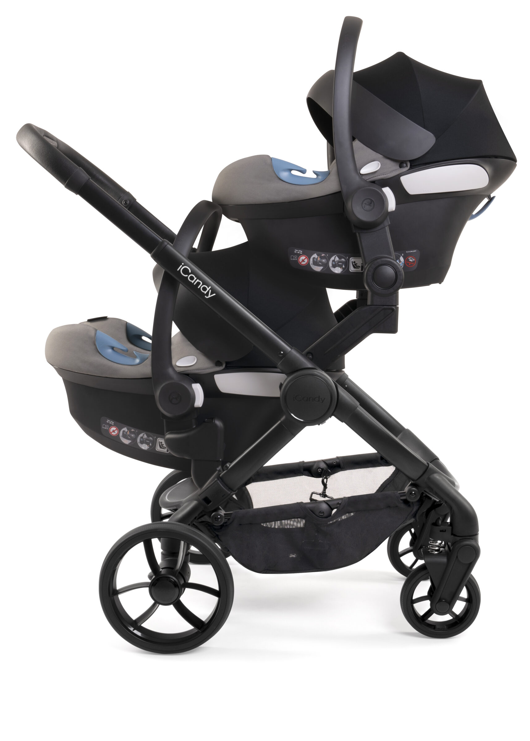 Uživajte u svakom trenutku vozeći istovremeno svoje blizance u 2 košare za novorođenče, u 2 autosjedalice ili pak u dva sjedeća dijela. I pritom ne brinite – iCandy kolica ponosno prolaze kroz skoro sva vrata jer postavljanjem druge košare/autosjedalice/sjedećeg dijela, širina kolica i dalje ostaje jednaka!
