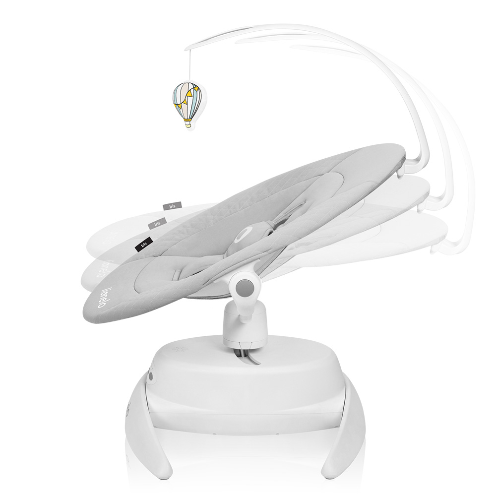 Lionelo Iris ljuljačka dizajnirana je umiri vašu bebu. Proizvod je prikladan za bebe od rođenja do 9 kg težine ili do kad ne nauče sjediti. Inovativno sjedalo koje se okreće za 360° ne samo da omogućuje podešavanje smjera ljuljanja, već i pomaže da vašu bebu uvijek imate na oku. Značajka podešavanja nagiba naslona u tri položaja omogućuje prilagodbu postavki prema djetetovim željama. Tri jedinstvena pokreta ljuljanja, zajedno s podešavanjem brzine u 5 razina, učinkovito oponašaju prirodni ritam ljuljanja roditelja. Tihi rad motora, u kombinaciji s 12 unaprijed učitanih melodija, stvara mirno okruženje za bebu dok se odmara u ljuljački.