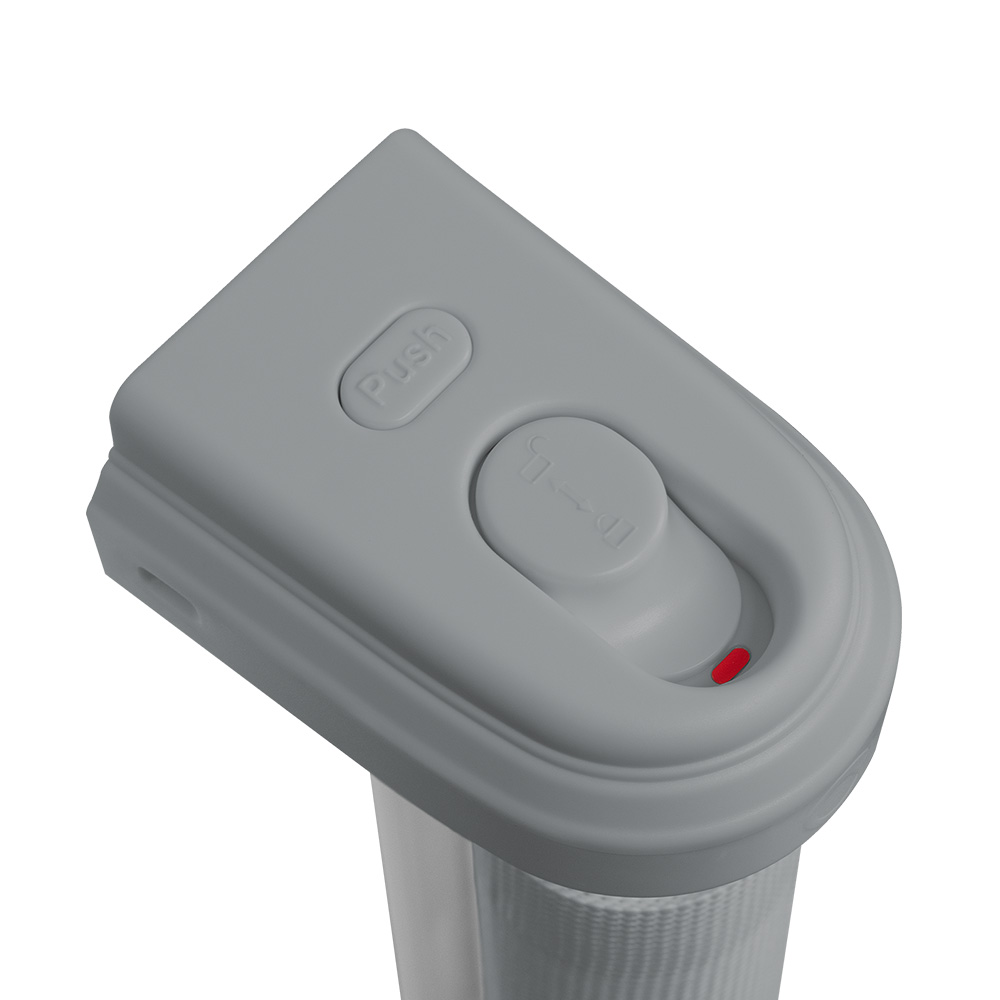 Ogradica je opremljena dvostrukim mehanizmom za zaključavanje. Vrata se mogu otvoriti samo istovremenim pritiskom kombinacije gumba kako bi se spriječilo da dijete samostalno otpusti bravu. Osim toga, namjenski indikator upozorava korisnika kada je brava za proširenje vrata aktivna.