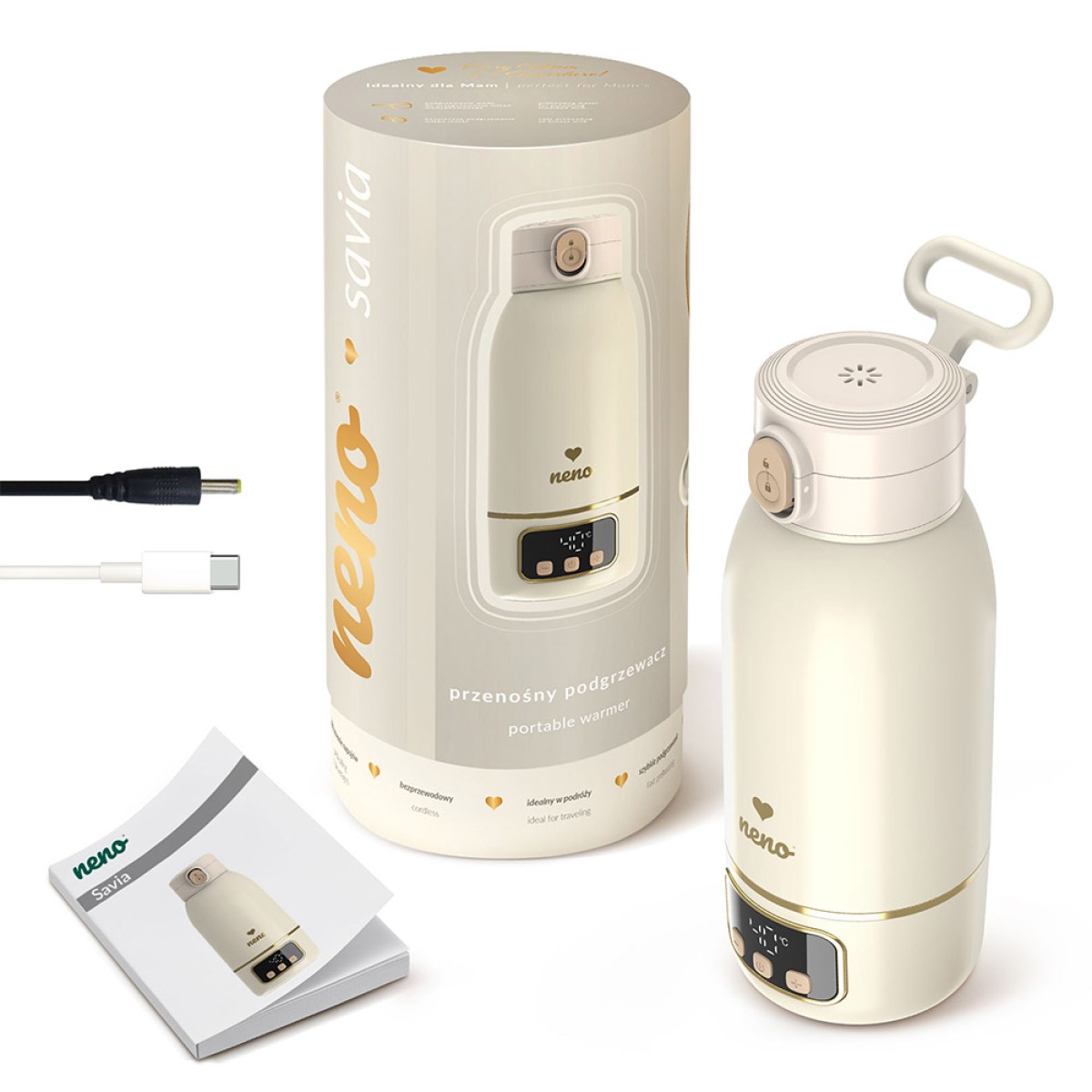 Neno Savia brzo zagrijava majčino mlijeko pohranjeno u hladnjaku. Pripremite mlijeko u šetnji, vožnji ili na odmoru! Uređaj ne samo da zagrijava vodu, već ju i automatski održava na odabranoj temperaturi i tijekom punjenja pomoću strujnog adaptera. Bezbrižno možete uživati u posebnim trenutcima sa svojim mališanom znajući da uvijek imate spreman topli napitak.