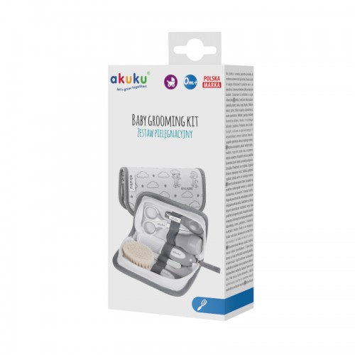 Škare (s tankim metalnim oštricama i zaobljenim rubovima) i grickalica pomoći će vam da sigurno irežete nokte, a rašpica za nokte lako će ukloniti neravnine na noktu, štiteći dijete od grebanja. Za bebinu glavicu pobrinut će se mekana četka od prirodnih vlakana i češalj. Aspirator s mekanim vrhom namijenjen je čišćenju dišnih puteva.
