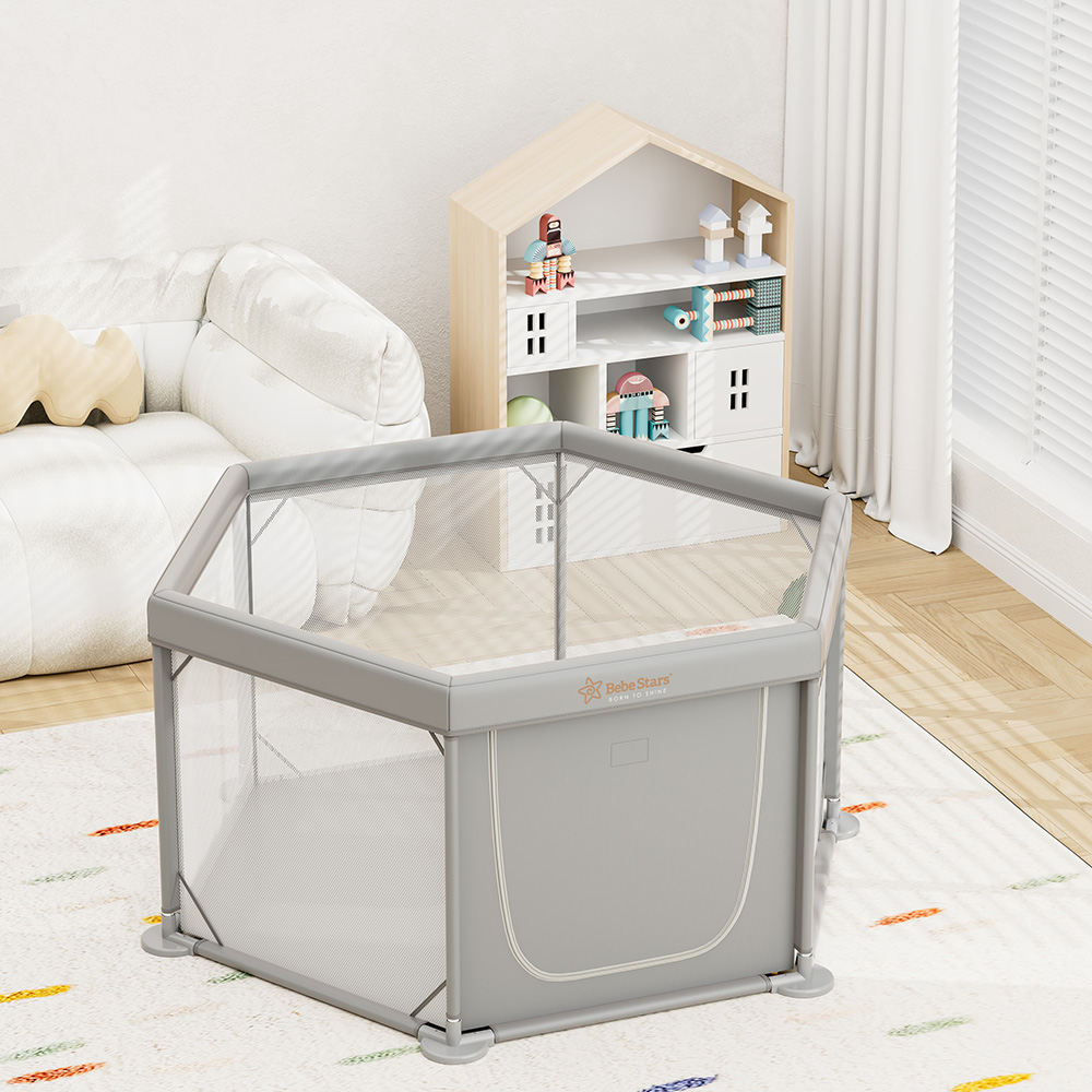 Kratki opis: Nova višenamjenska platnena ogradica Cool marke BebeStars dizajnirana je u obliku šesterokuta, tako da ne zauzima puno prostora u sobi, ali pruža dovoljno prostora za djecu tijekom igre.