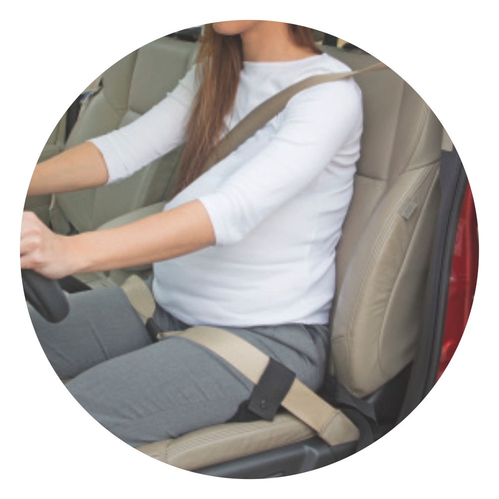 Nikada ne stavljajte sigurnosni pojas preko trbuha, jer to može uzrokovati odvajanje posteljice ili ozljedu fetusa u slučaju sudara. Uvijek nosite pravilno postavljen sigurnosni pojas s tri točke vezanja radi vaše i bebine sigurnosti.
