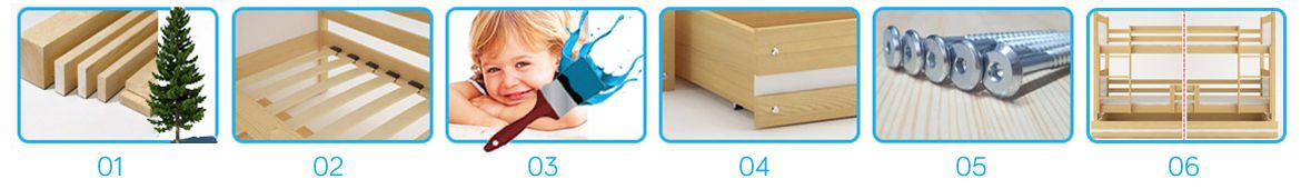 Svi kreveti bojani su tri puta, što garantira trajnost boja i visoku kvalitetu premaza. Korištene su samo sigurne i za djecu odobrene boje na bazi vode. Boje odgovaraju standardu EN 71/3.