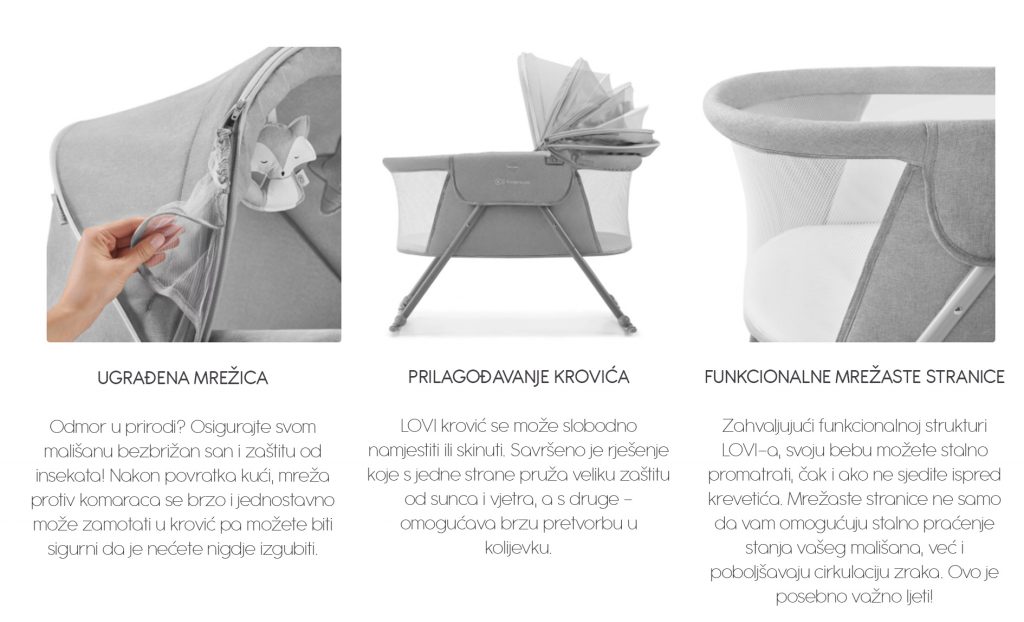 Kratki opis: Dječji krevetić LOVI 3 u 1 iznimno je funkcionalan. Može se koristiti kao kolijevka, putni krevet ili dječji krevet za dom.