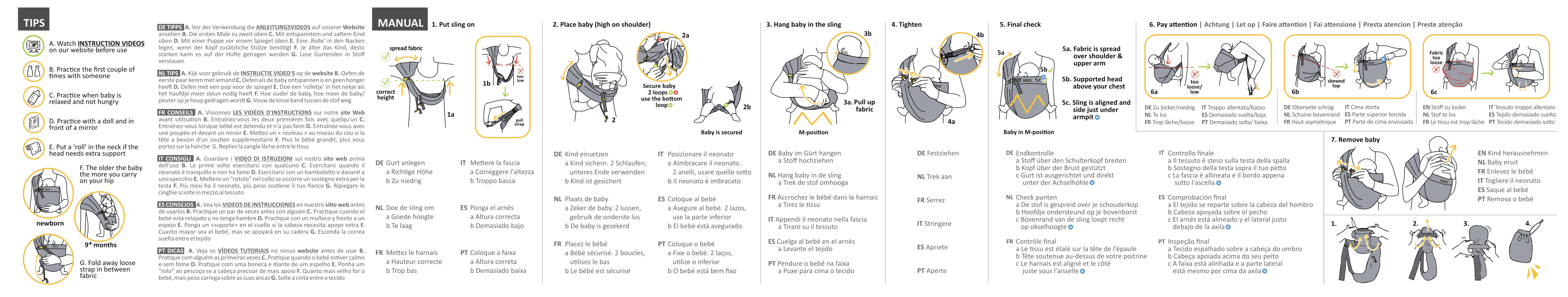 Prozračna Mini Sling nosiljka omogućuje ergonomsko nošenje bebe od rođenja do 2 godine ili max 15 kg. Sigurno: usklađeno sa svim sigurnosnim normama EU-a. Može se prati na 40º (u vrećici za pranje i pri niskim okretajima)